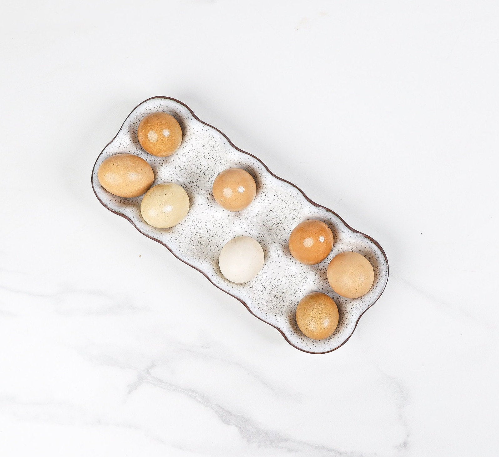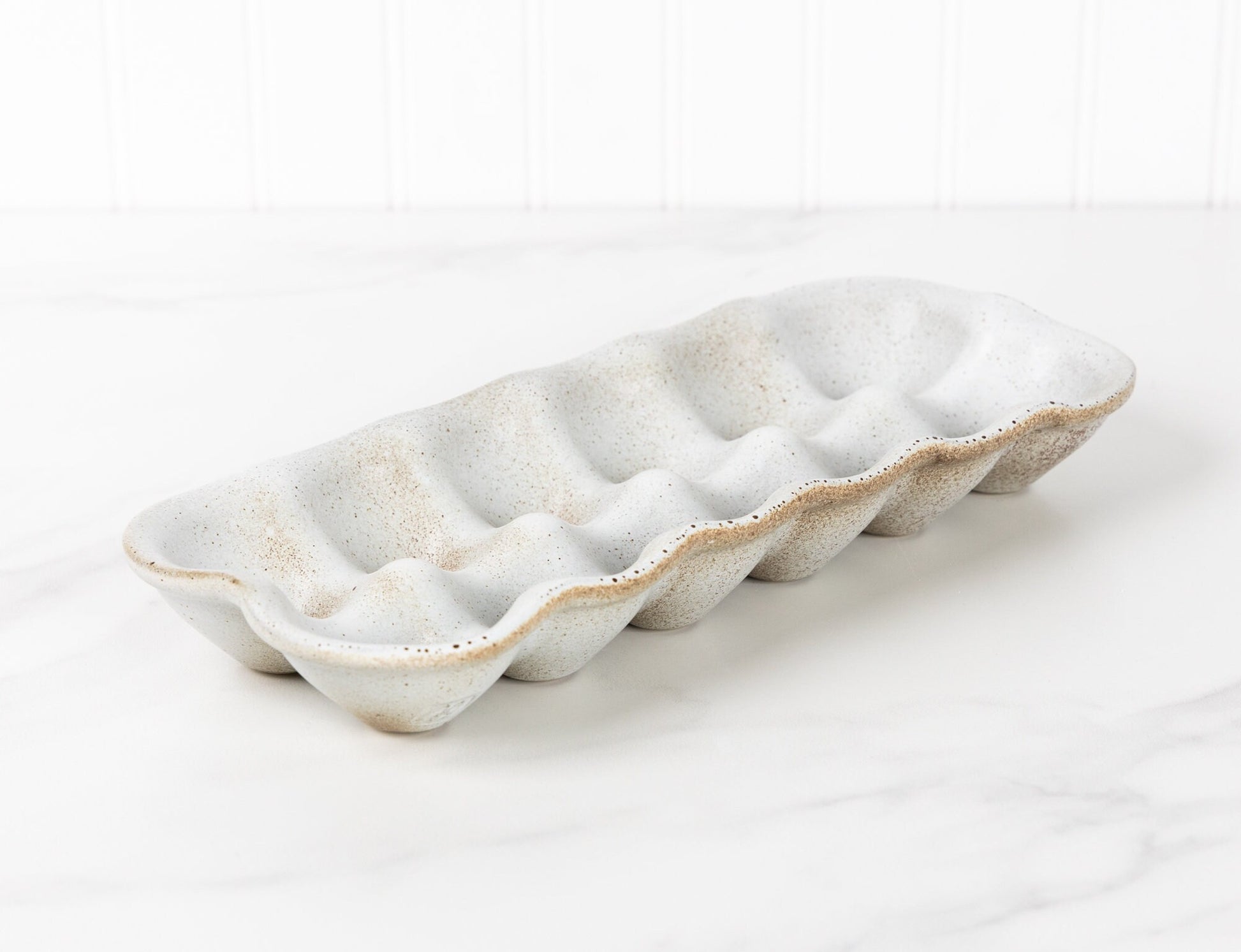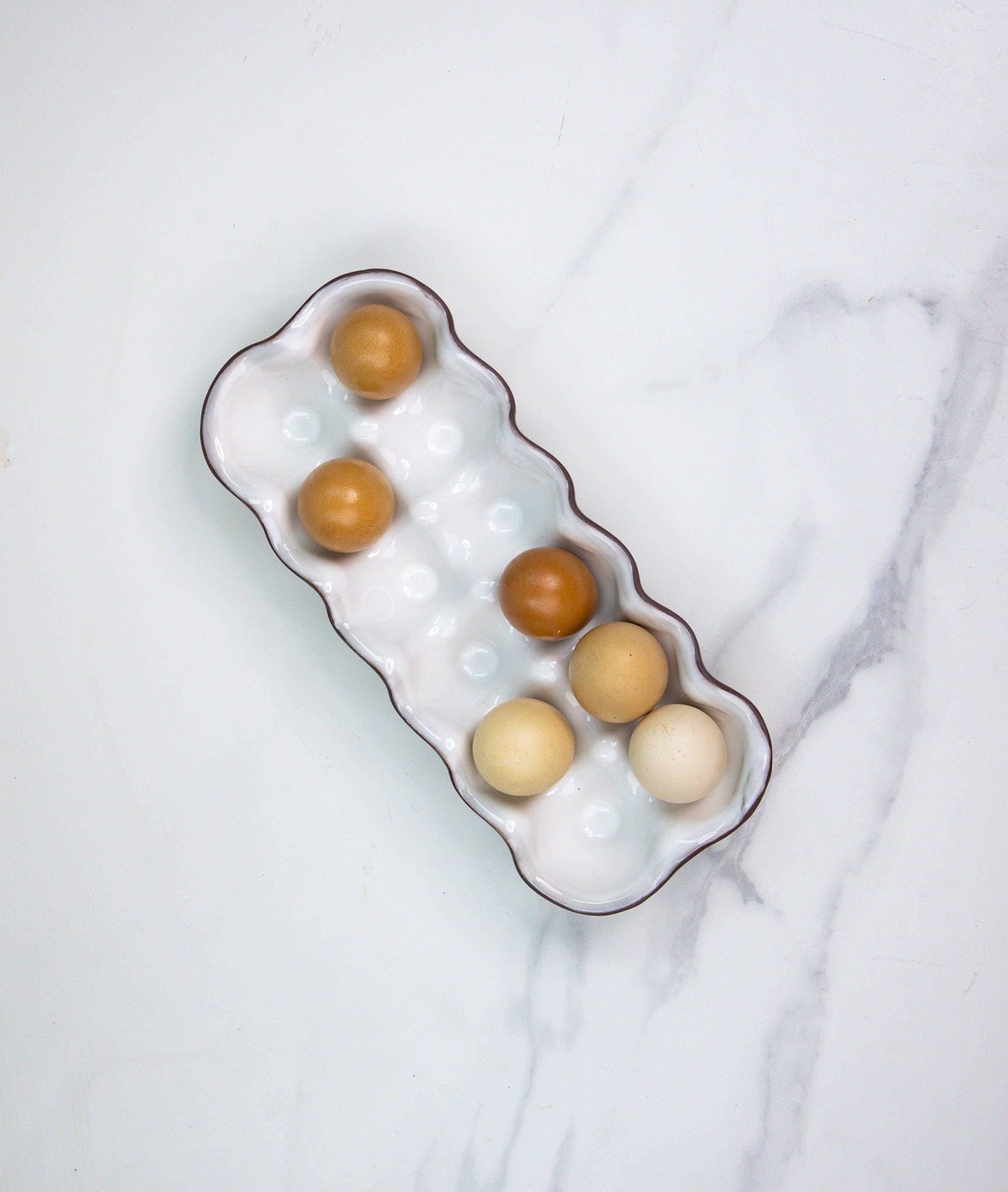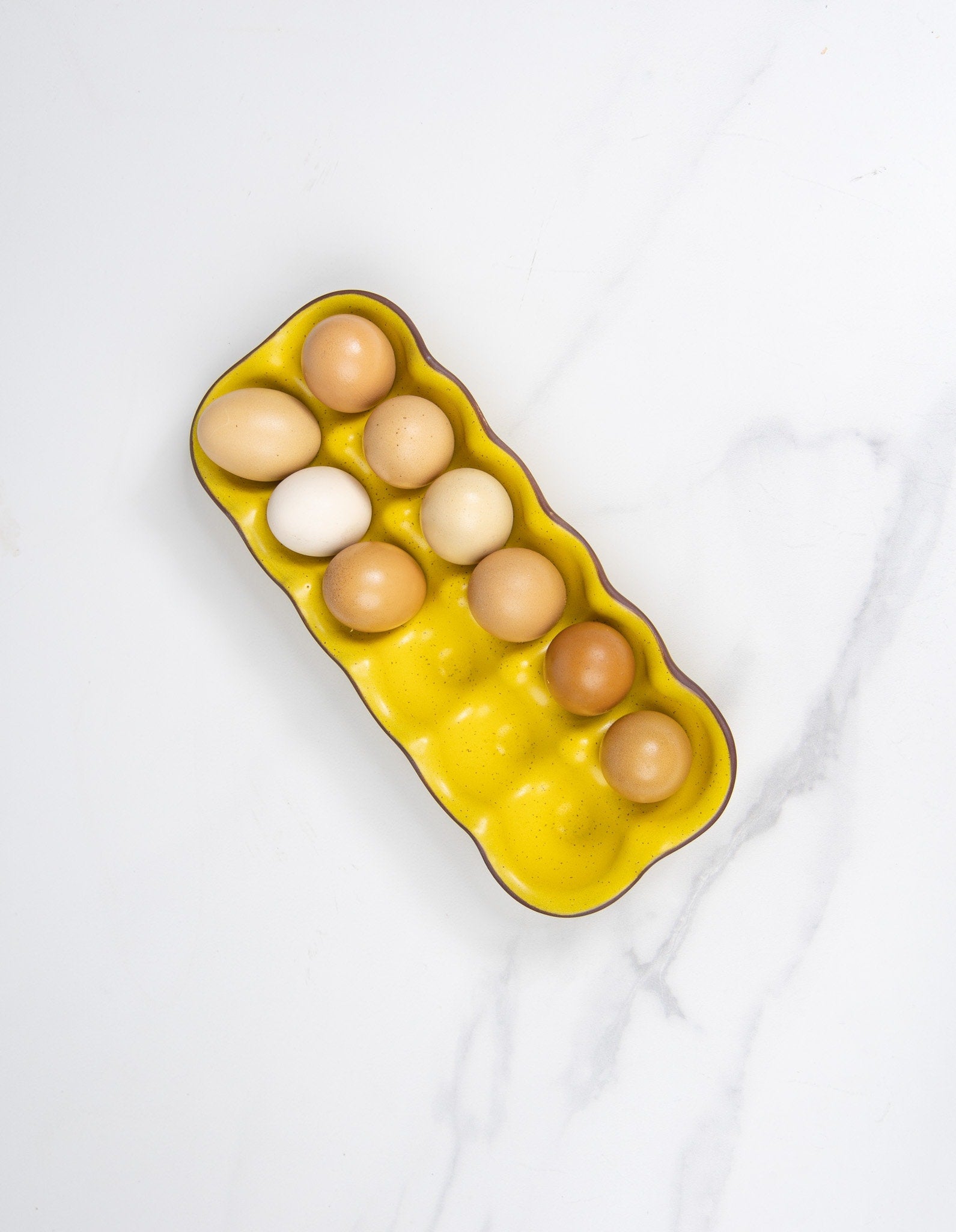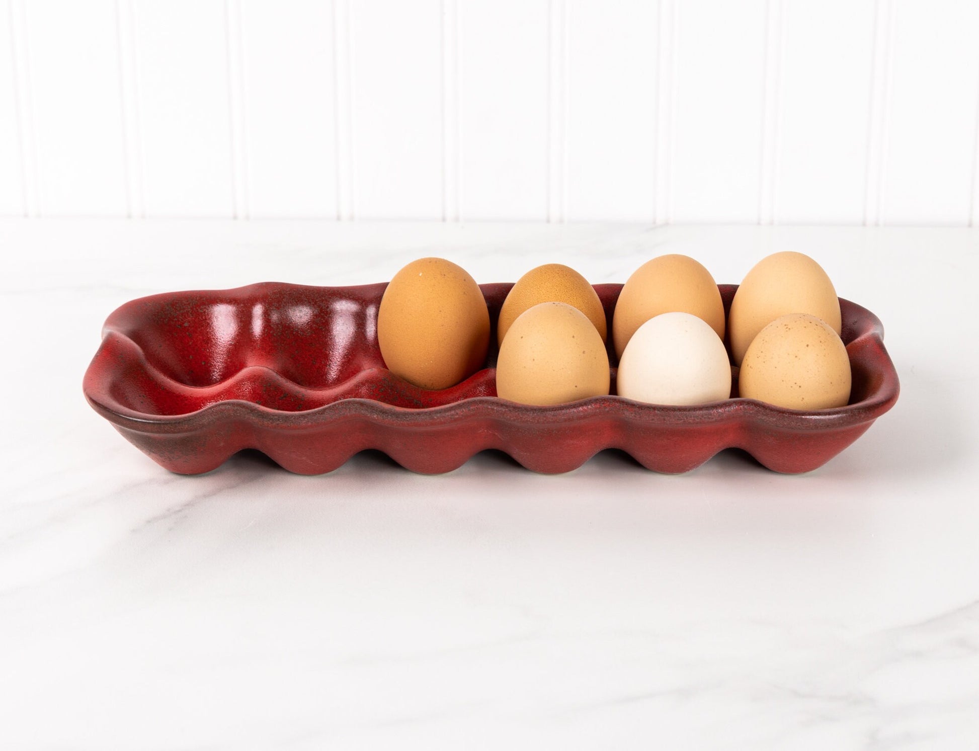 A durable and reusable alternative to cardboard cartons, this ceramic egg holder turns a practical necessity into a thoughtful, well-made kitchen essential. Each piece is shaped, glazed, and kiln-fired in small batches, ensuring every crate has its own subtle character.