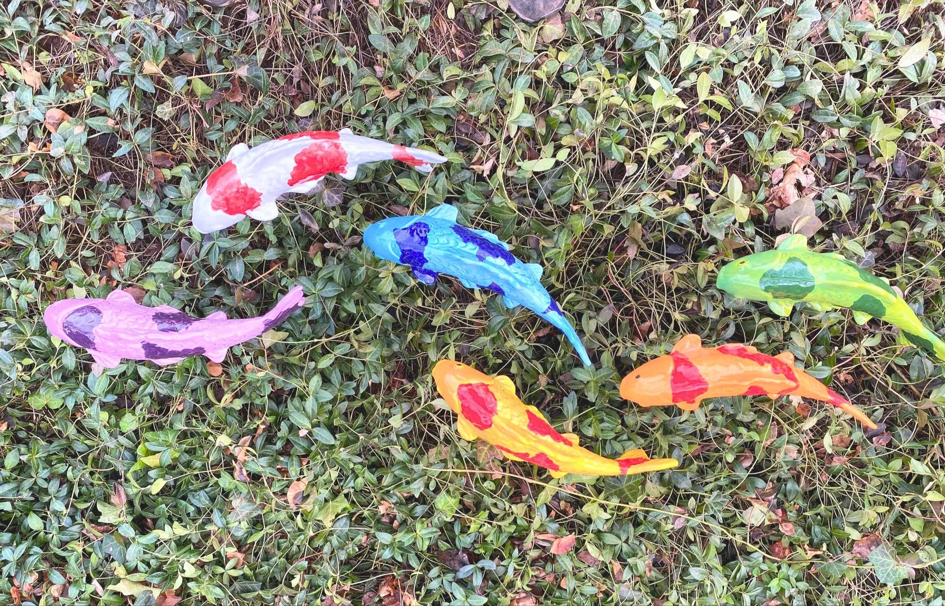 Every koi is made from durable, high-fired stoneware and finished by hand, so no two are exactly alike. Subtle variations in glaze and form are part of what make each piece unique.