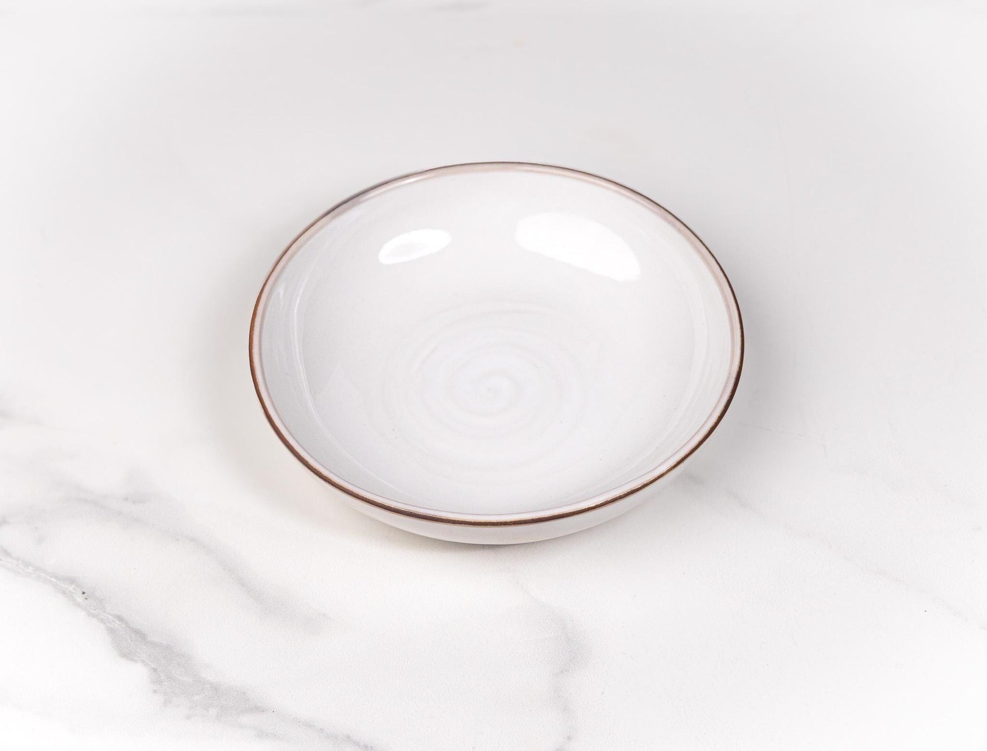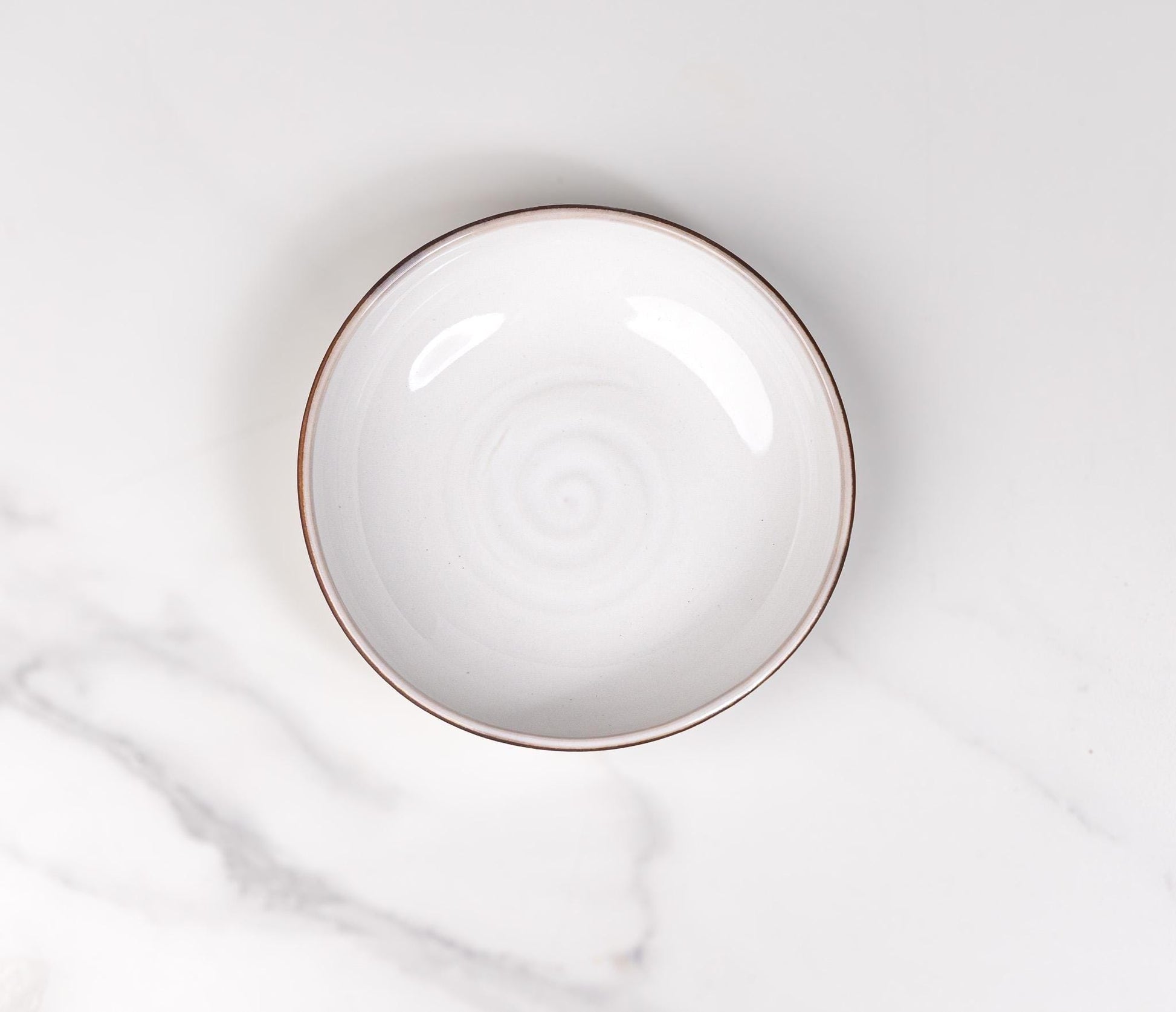 A clean white glaze with gentle speckles from the clay beneath. Timeless, simple, and easy to pair.