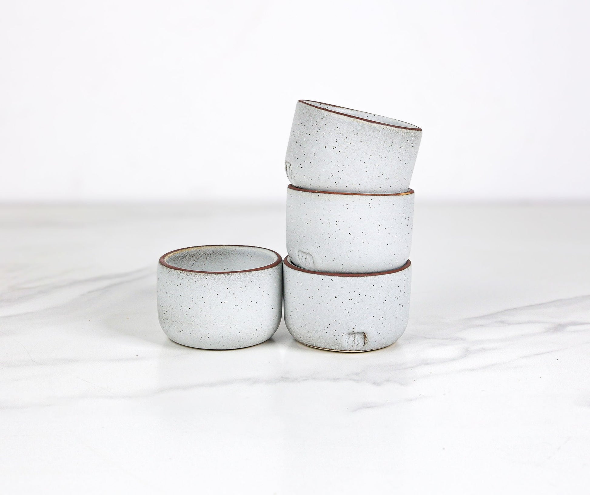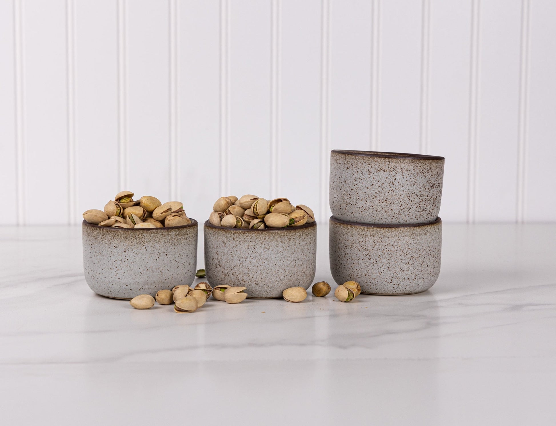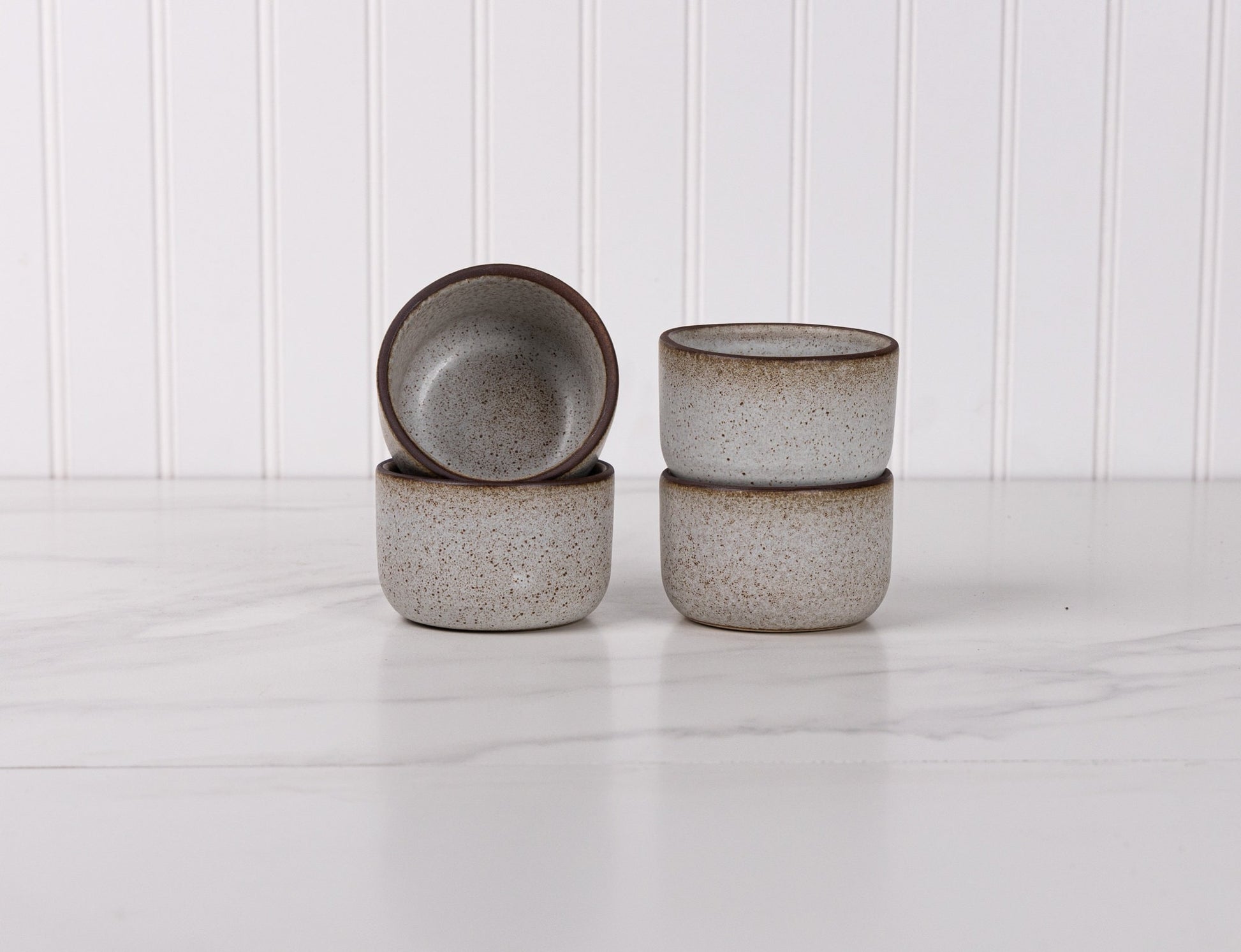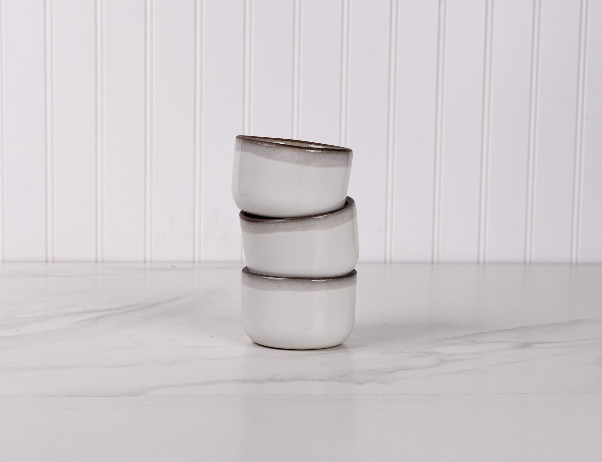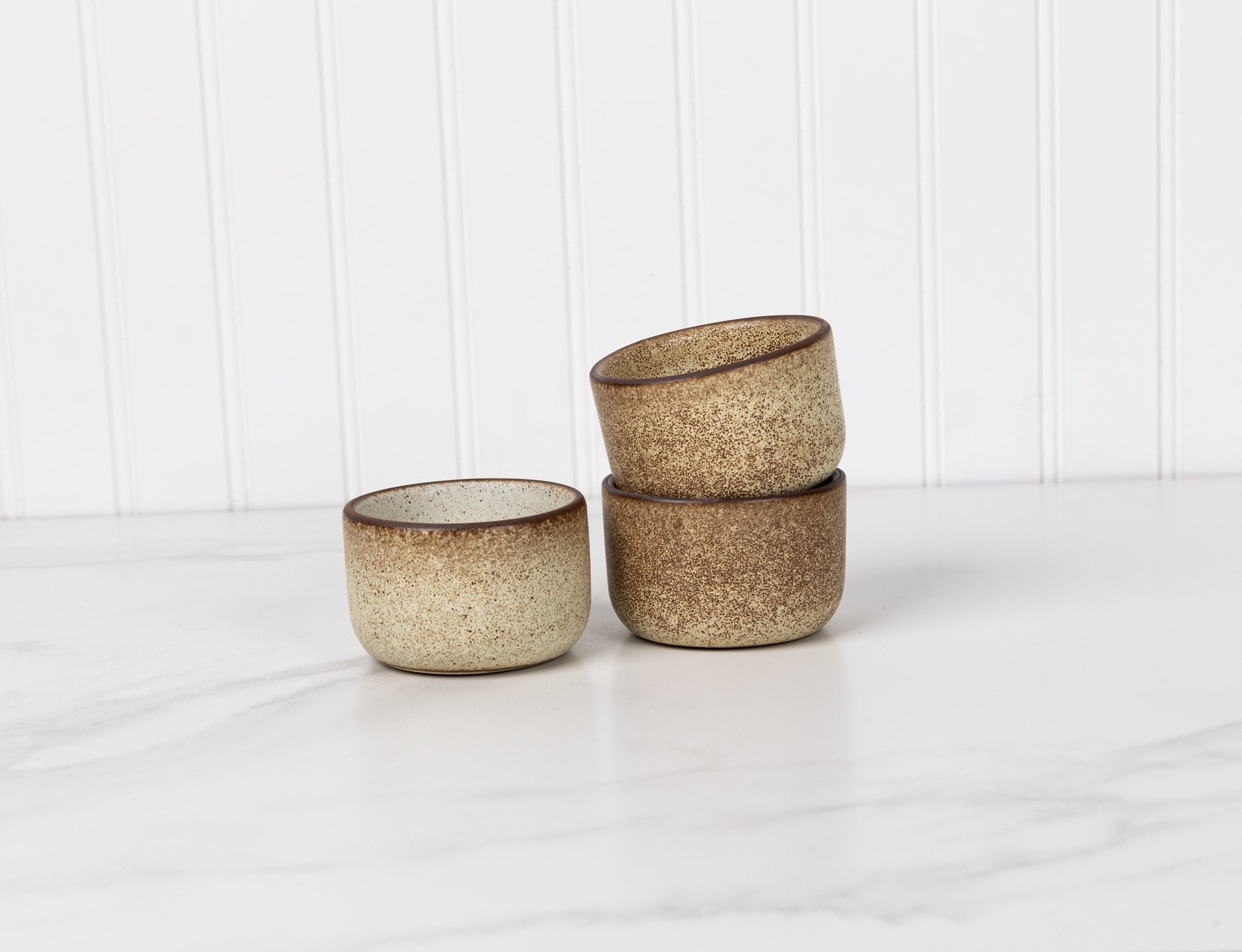 This handmade stoneware ramekin set is designed for everyday versatility in the kitchen. Crafted by our small team of American potters, these ramekins are perfectly sized for condiments, sauces, spices, salt and pepper, or individual servings.