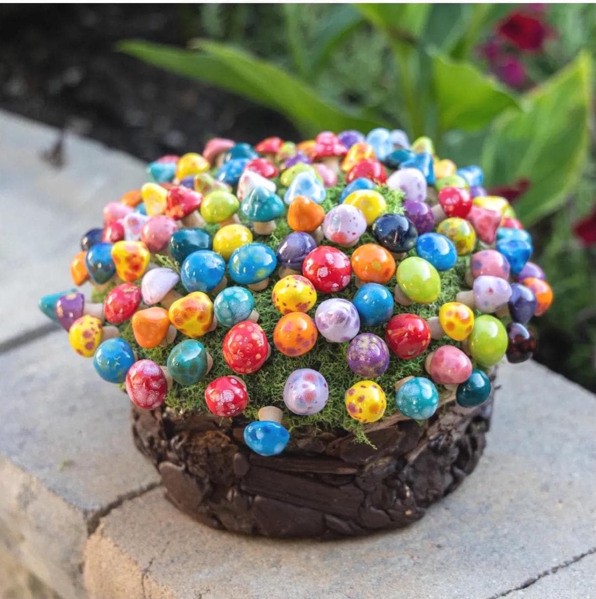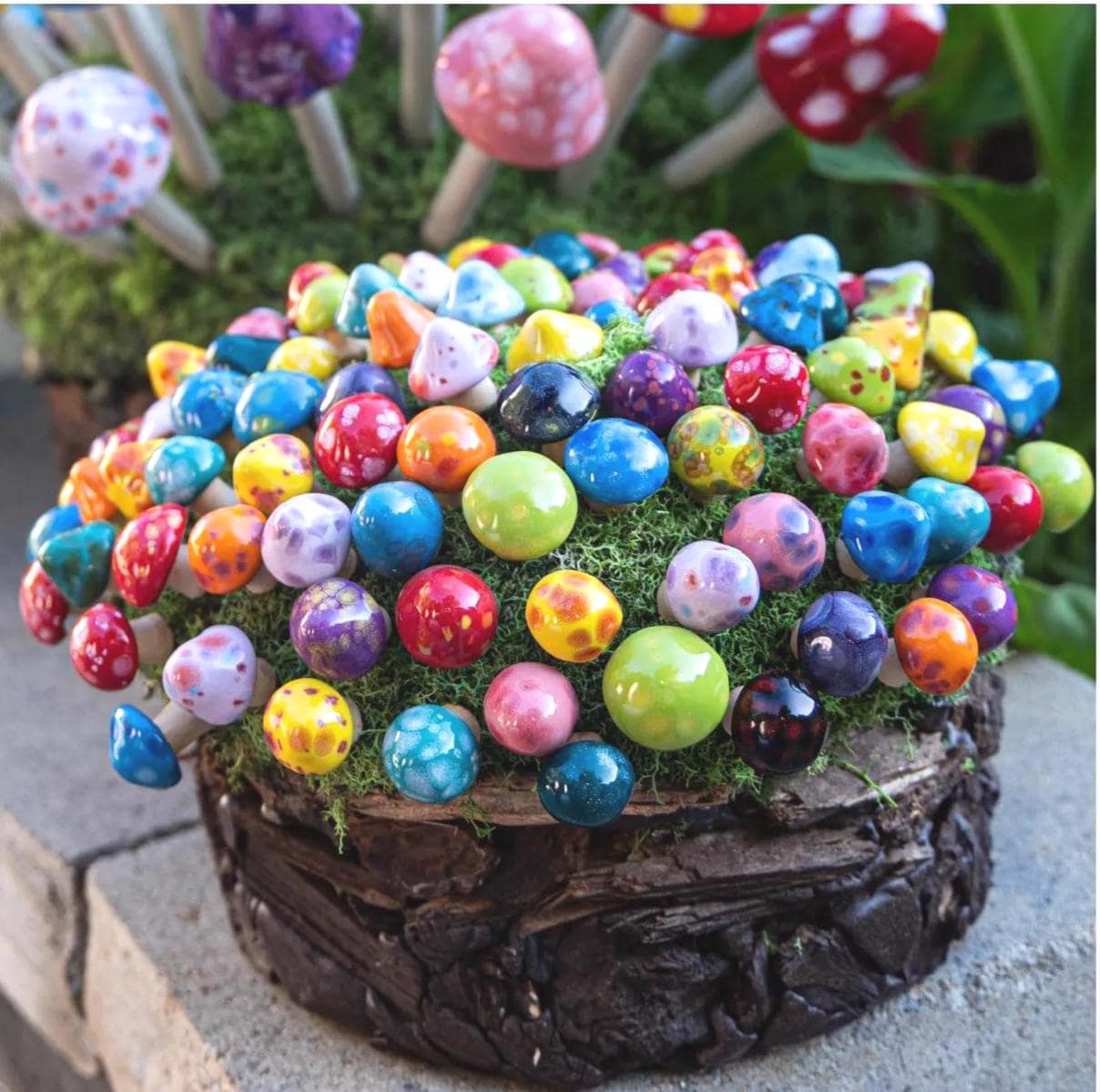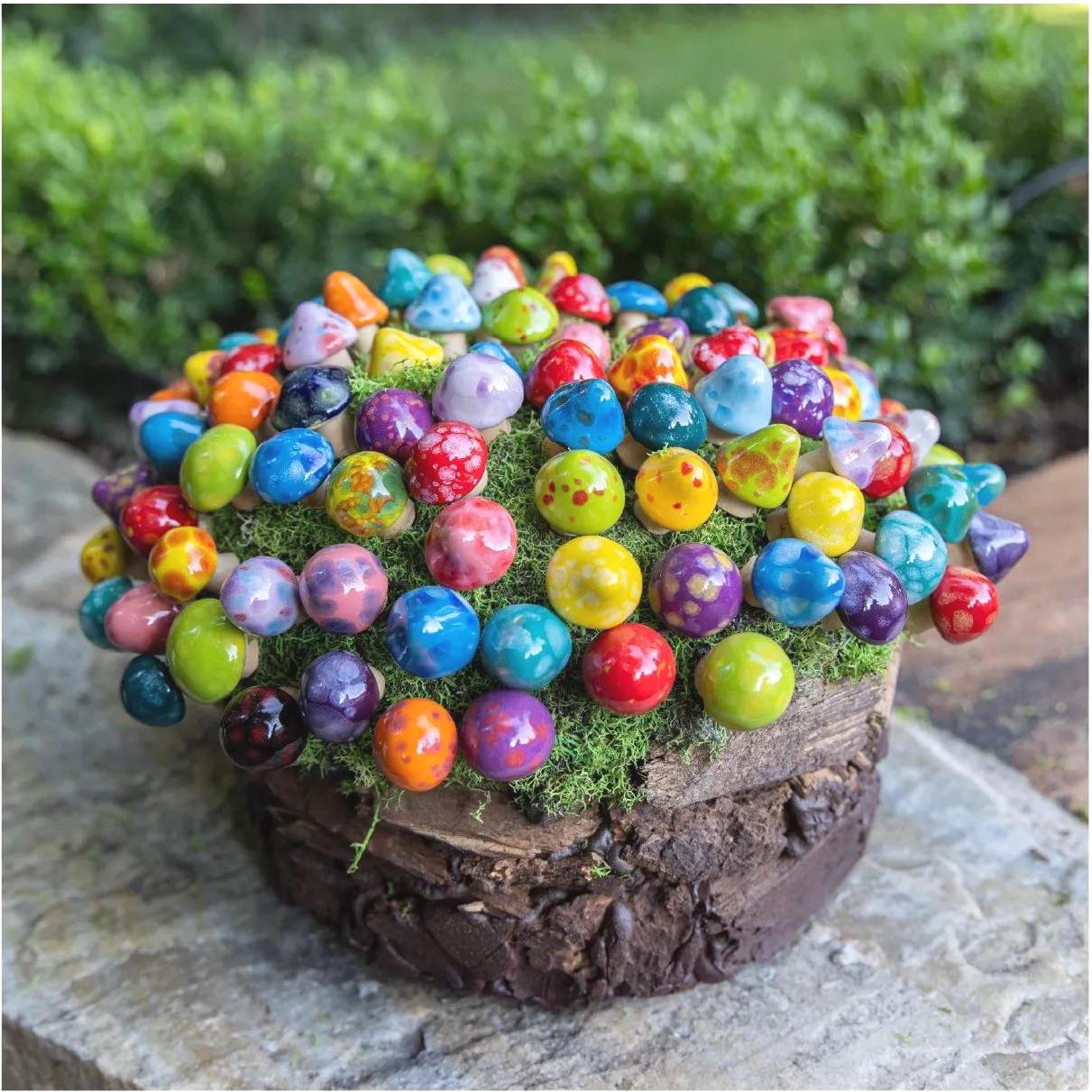 Beautiful ceramic mushrooms that will add pops of color to my water feature. Thoughtful Etsy seller providing excellent customer service.
