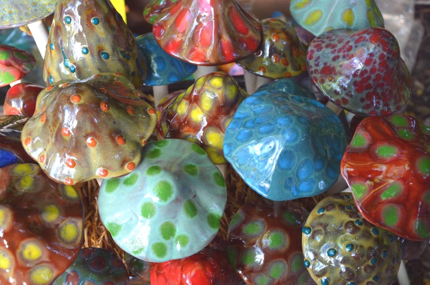 Shroomyz are our signature handmade ceramic mushrooms, designed to bring color and personality to gardens, planters, and outdoor spaces year-round.