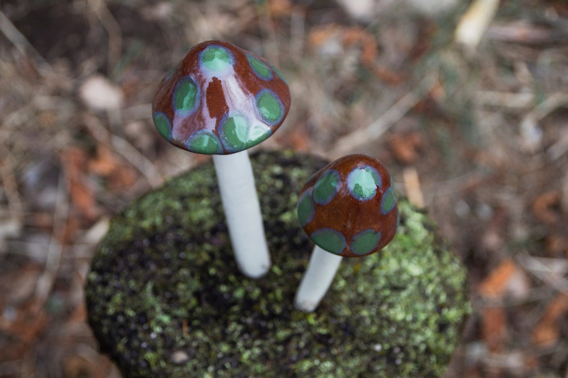 Beautiful ceramic mushrooms that will add pops of color to my water feature. Thoughtful Etsy seller providing excellent customer service.