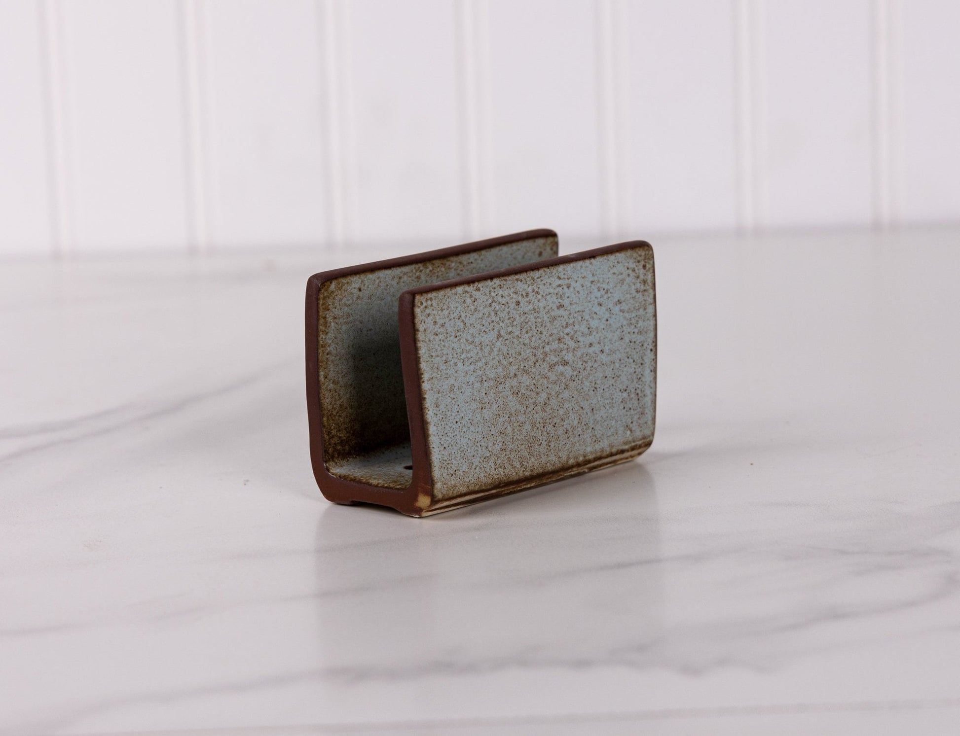 This handcrafted stoneware sponge holder is designed to keep your sink area tidy, organized, and easy to maintain. Made by our small team of American potters, it offers a durable, thoughtfully designed place for sponges to rest between uses.