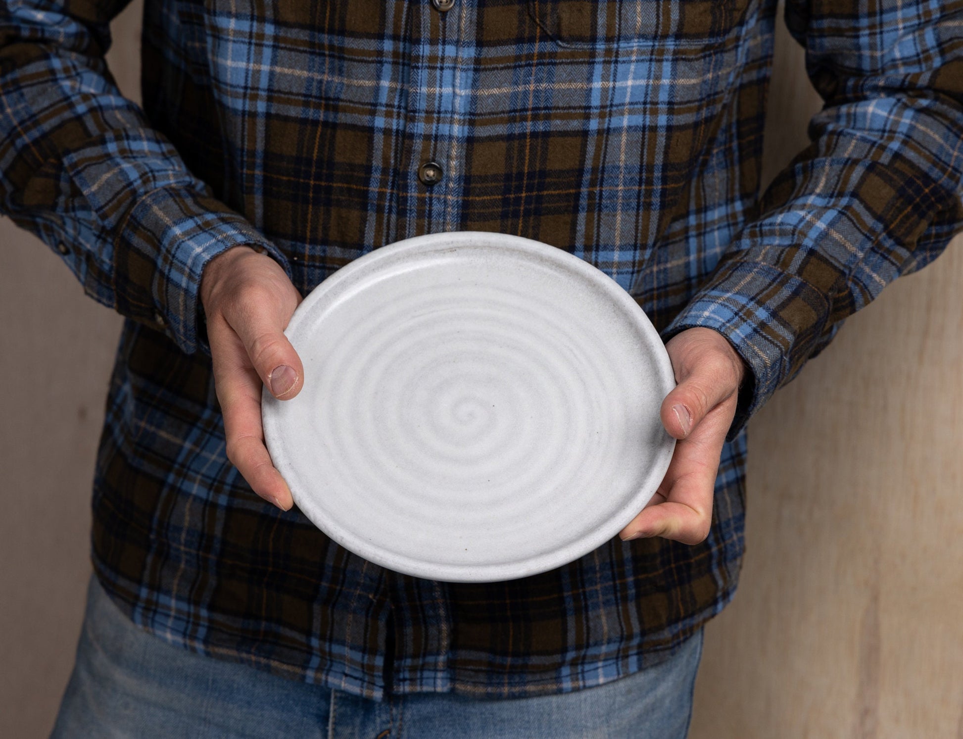 Subtle throwing rings and natural variations reflect the potter’s hand, making every plate one of a kind. Designed for everyday use, the gently raised rim helps keep sauces and sides contained, while the high-fire stoneware and vitrified glaze offer excellent durability and scratch resistance.